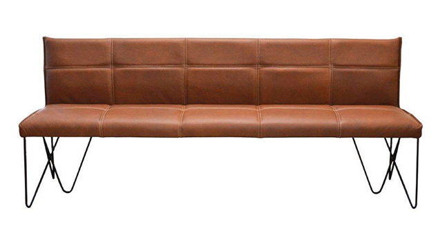 Das Bankmodell Henri bekommt durch die Kreuznaht ein extravagantes Aussehen. Optional gibt es die Kreuznaht auch mit Kontrastfaden in den Farben Weiß, Hellgrau Anthrazit oder in Schwarz. Auf Wunsch kann Henri auch ohne Ziernaht gefertigt werden. Alle Bänke werden entweder stehend auf Füßen gefertigt oder auf Kufen ruhend.
